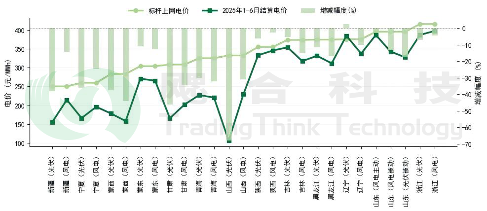 2025年1-6月部分省份新能源结算情况