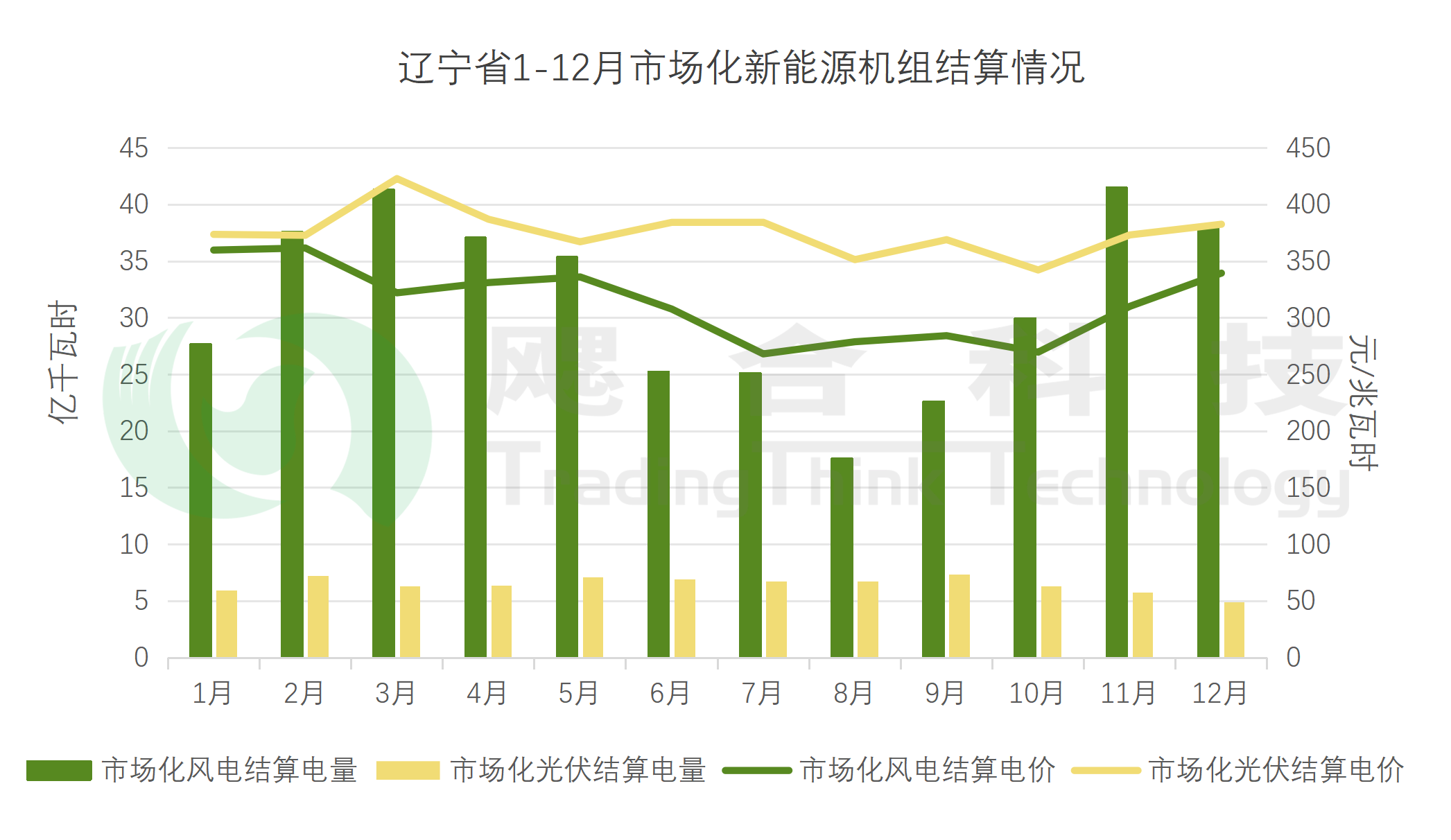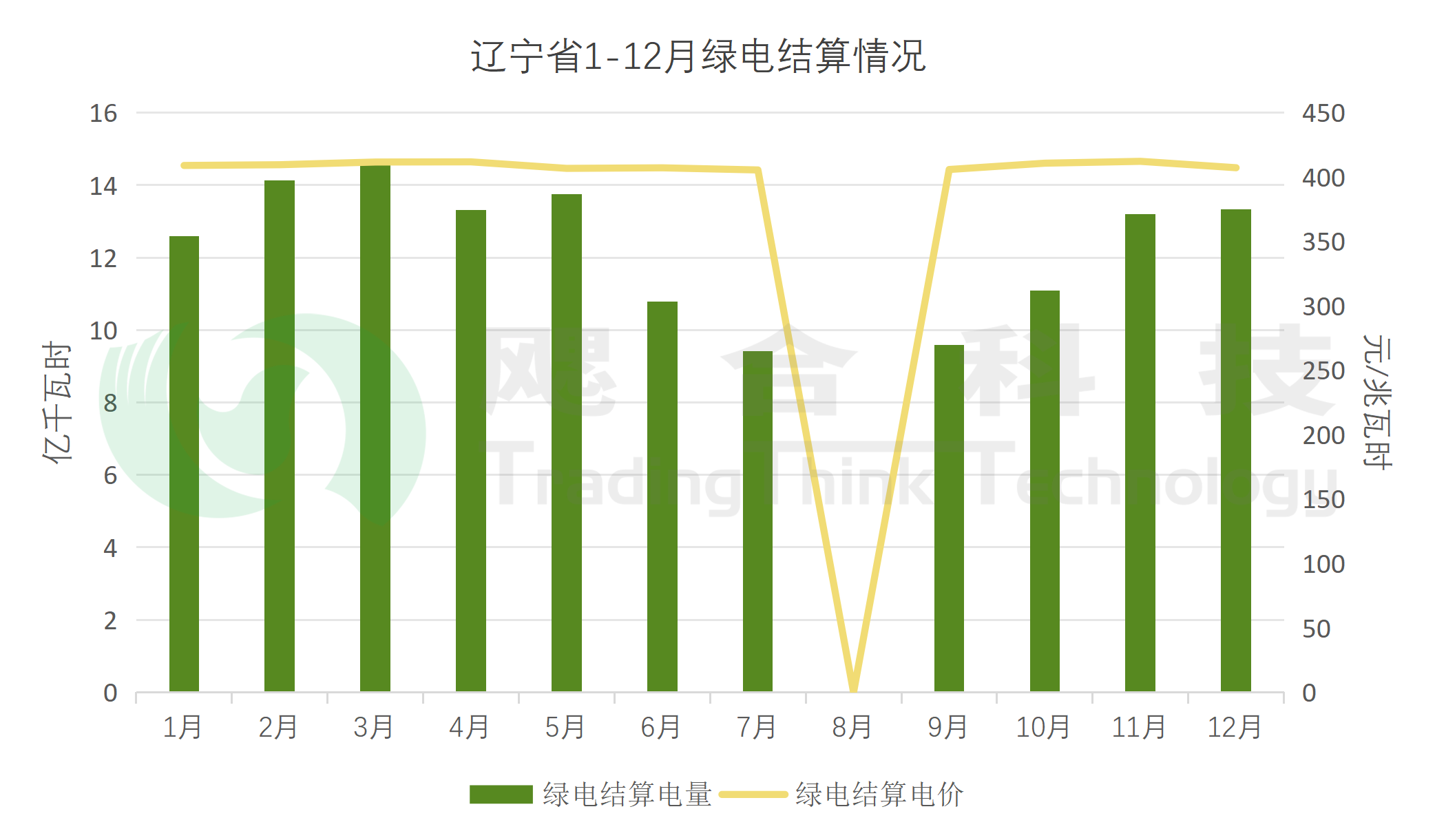 1-12月辽宁新能源机组总计结算绿电135.82亿千瓦时,结算均价409.07元/兆瓦时。其中8月份数据未披露。