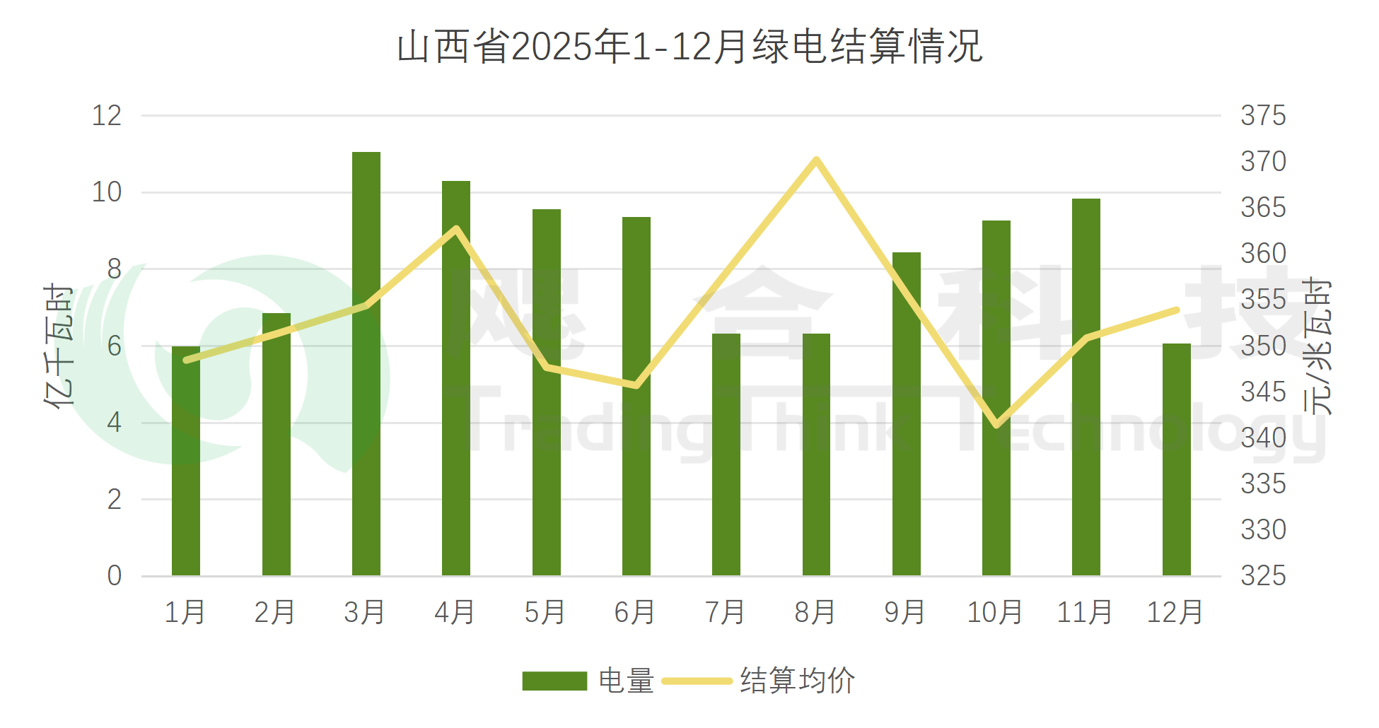 2025年,山西绿电结算电量99.39亿千瓦时,结算均价352.96元/兆瓦时。