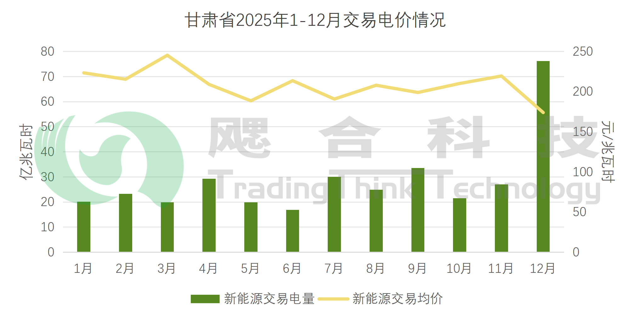 2025年1-12月新能源交易情况如下:交易电量共342.67亿千瓦时,交易均价201.89元/兆瓦时。新能源结算情况如下:风电结算电量共475.63亿千瓦时,结算均价197.77元/兆瓦时;光伏结算电量共322.89亿千瓦时,结算均价160.05元/兆瓦时。绿电结算电量为24.13亿兆瓦时,结算均价为269.48元/兆瓦时。