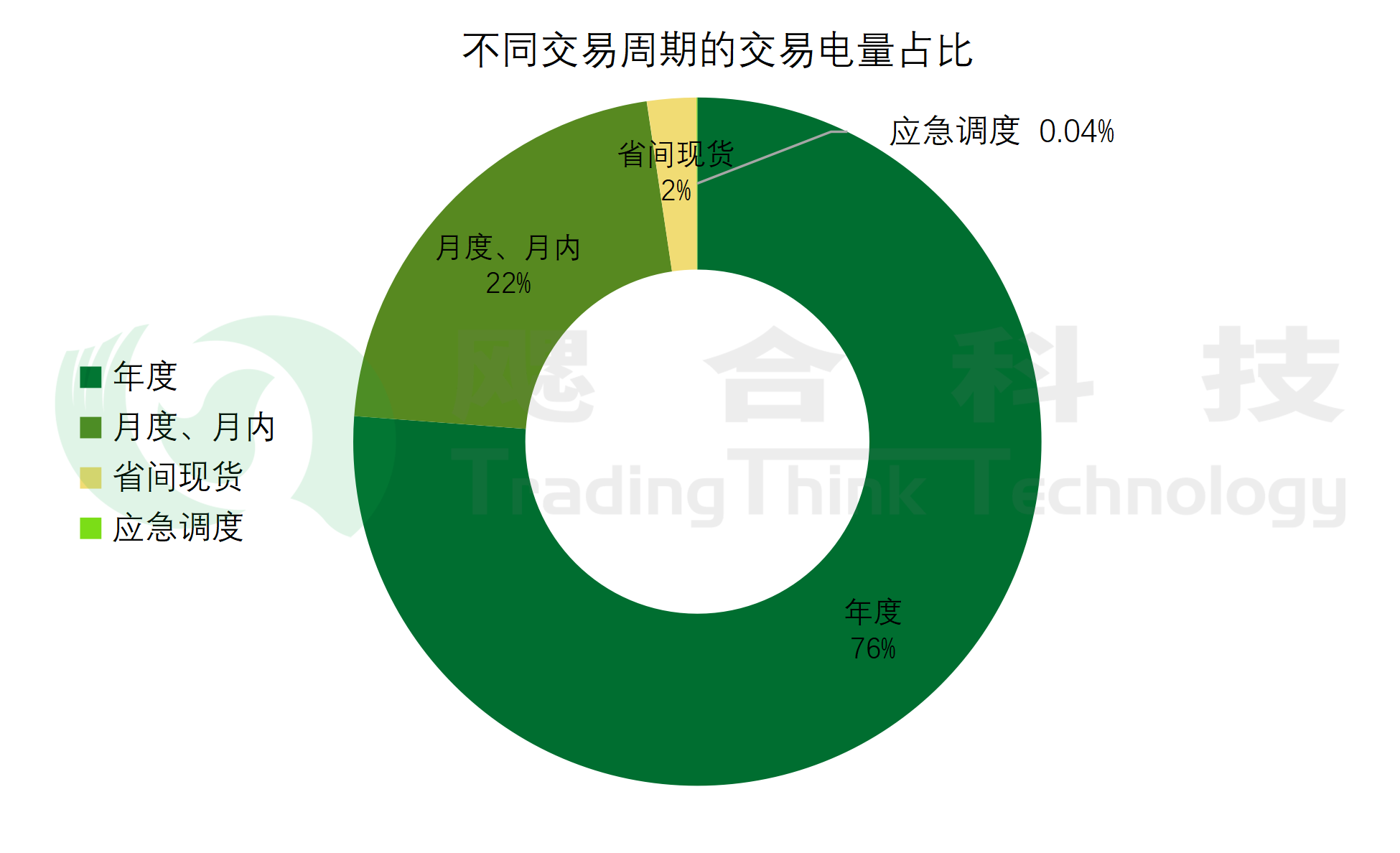 从交易周期来看,年度省间交易电量12705亿千瓦时,同比增长6.1%,占省间交易电量的76.2%;月度、月内省间交易电量3580亿千瓦时,同比增长28.4%,占省间交易电量的21.5%;省间现货交易电量386亿千瓦时,同比下降0.7%,占省间交易电量的2.3%;应急调度电量6亿千瓦时,同比下降63.5%,占省间交易电量的0.04%。