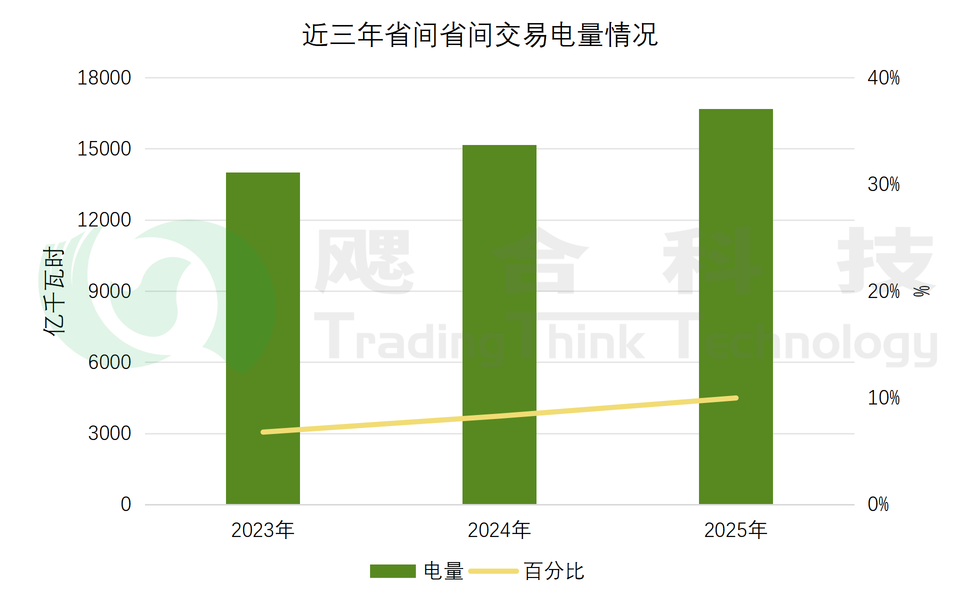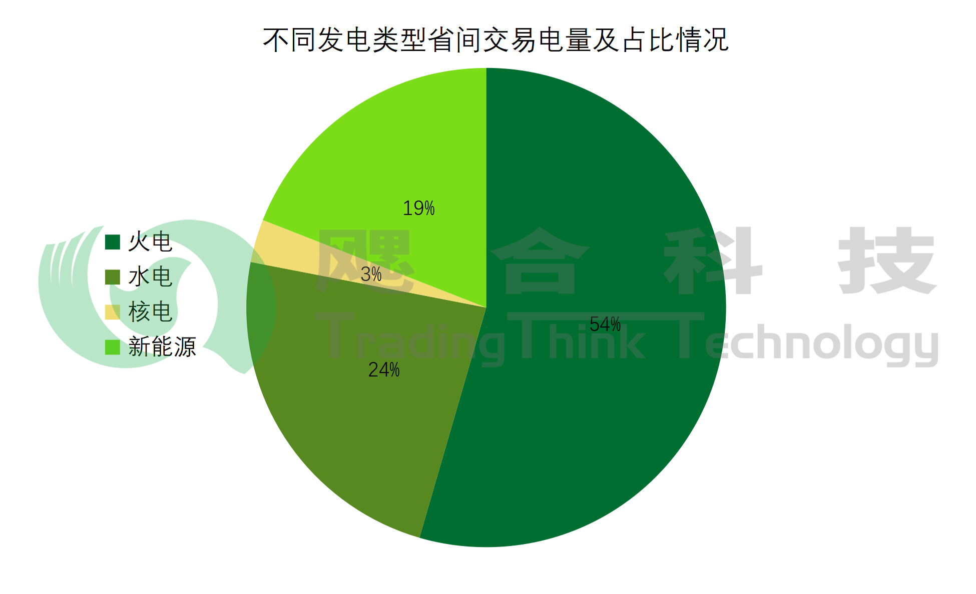 按发电类型看,省间火电交易电量9086亿千瓦时,同比增长5.2%;省间水电交易电量3929亿千瓦时,同比增长3.8%;省间核电交易电量485亿千瓦时,同比下降1.6%;省间新能源交易电量3177亿千瓦时,同比增长41.1%。