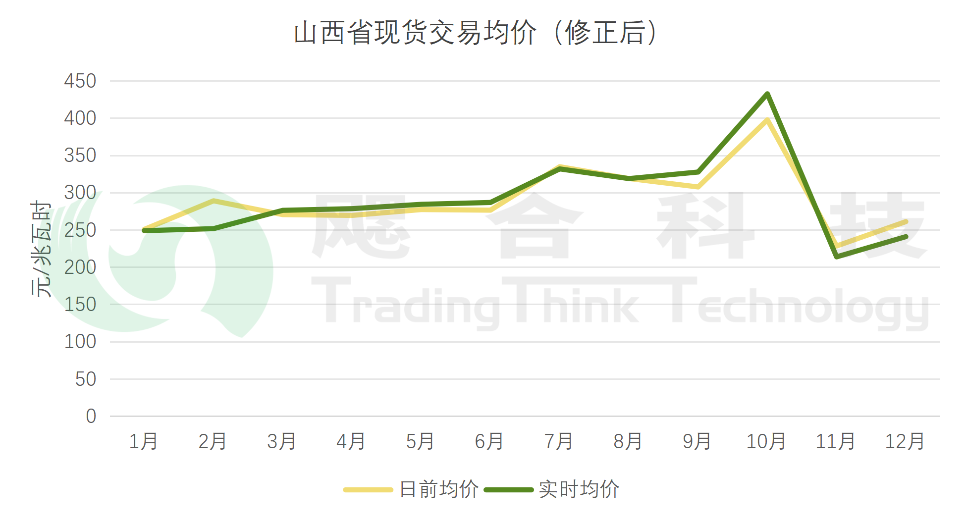 2025年,山西省现货日前均价290.40元/兆瓦时,实时均价291.25元/兆瓦时。