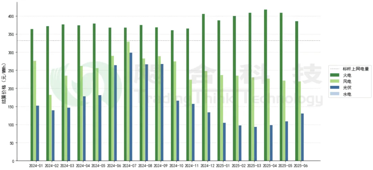 山西2024年1月-2025年6月结算价格(元/MWh)