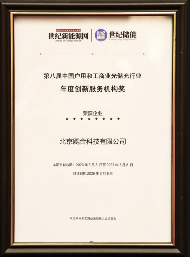 在近日揭晓的行业评选中,北京飔合科技有限公司凭借在电力市场化交易领域的深厚积淀与数智化平台的卓越创新,接连斩获由北极星电力网授予的“2026北极星杯·风电影响力智慧风场运营商”以及世纪新能源网颁发的“第八届中国户用和工商业光储充行业·年度创新服务机构奖”。