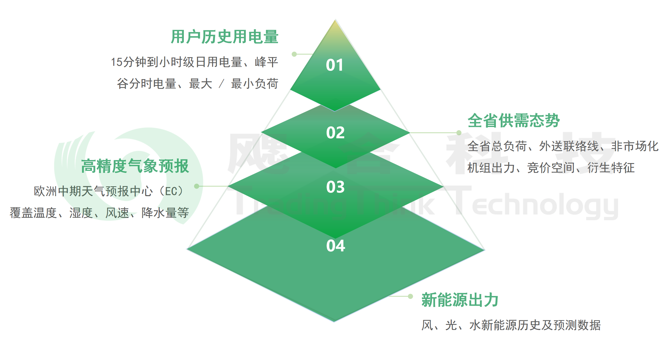 风、光、水等可再生能源的波动性,正在深刻重塑电力市场的价格信号。系统整合新能源出力数据,捕捉这些波动对用户行为的间接影响:因此最后一层数据聚焦新能源出力,整合了风、光、水三类新能源的历史和预测数据。光伏大发时电价较低,冶炼、制冷等企业倾向增加用电;风电出力高峰时低谷电价更低,抽水蓄能等储能型用户会集中充电;丰水期水电充沛时电解铝等高耗能企业会加大生产力度。将这些可再生能源对市场的影响全面纳入预测模型,进一步提升预测精度。